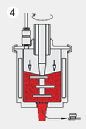 On completion of the dispersion process, the sieve sealing plug is removed and the milling container is discharged with assistance of compressed air.