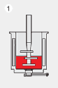 The Milling System APS can be easily fitted to the DISPERMAT® laboratory dissolver. It is filled with the appropriate quantity of millbase. The milling tool is lowered.